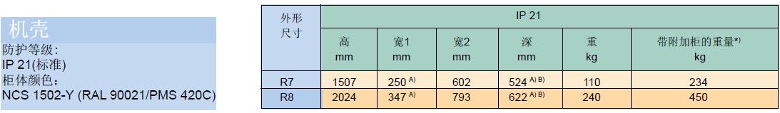 功率等級和外形尺寸
