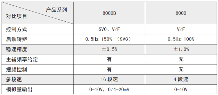 8000B系列和8000系列的功能區別如下表: