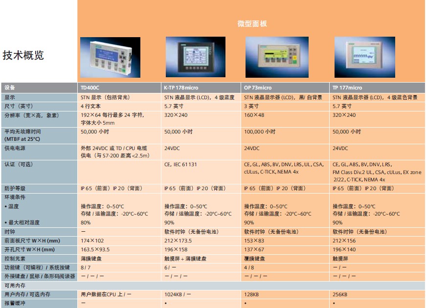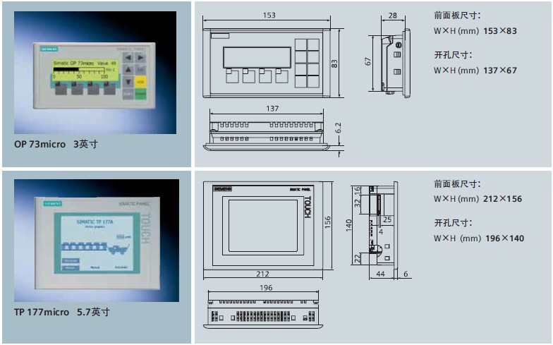西門子Siemens微型面板 TD系列 77Micro 系列 177Micro 系列